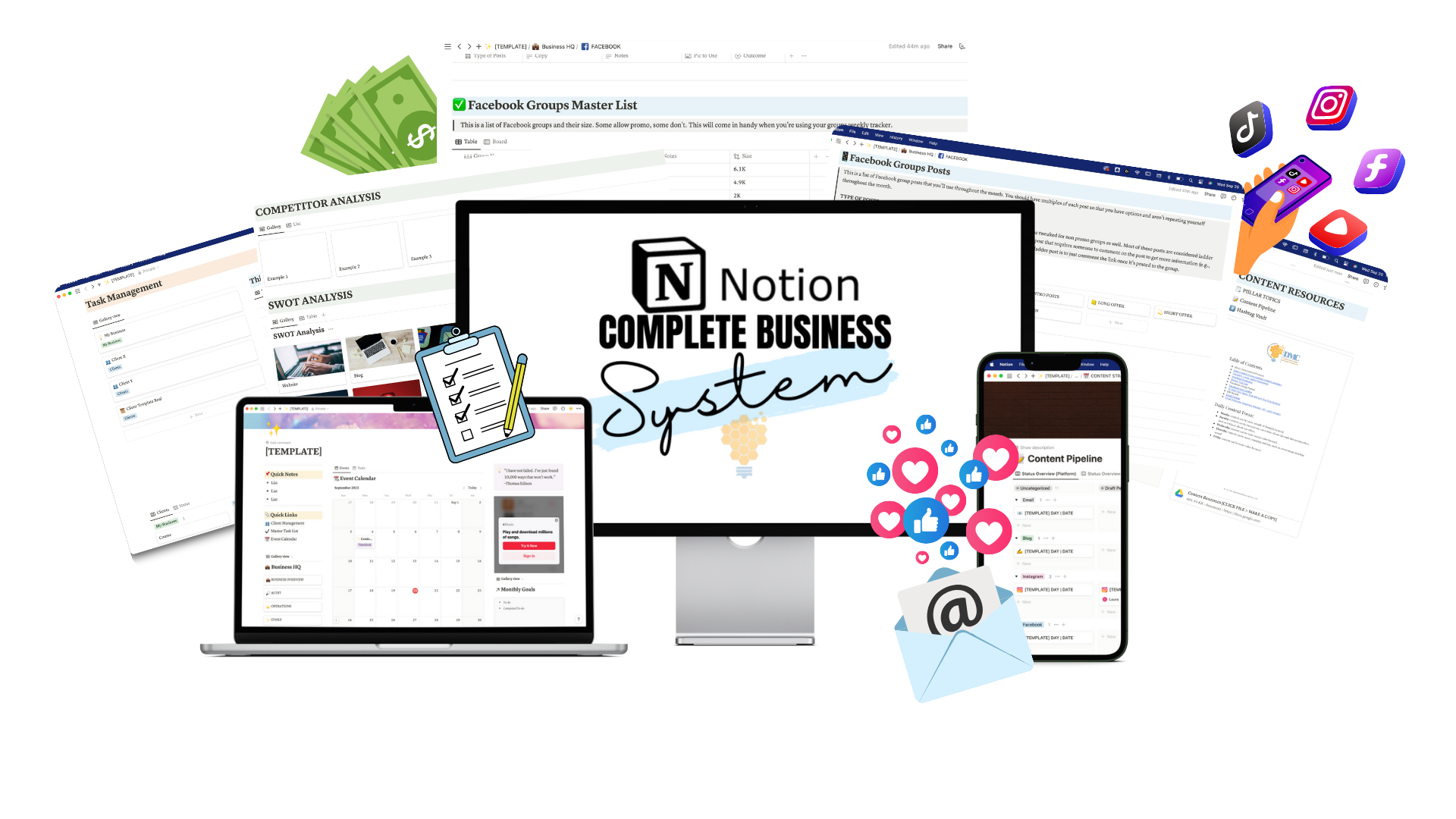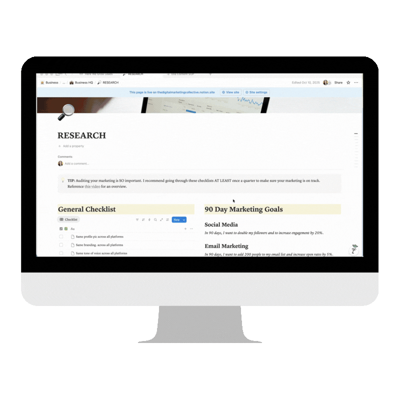 The Complete Business Management System is a fully customizable Notion template that organizes your entire operation—content, clients, leads, tasks, everything—in one place.
