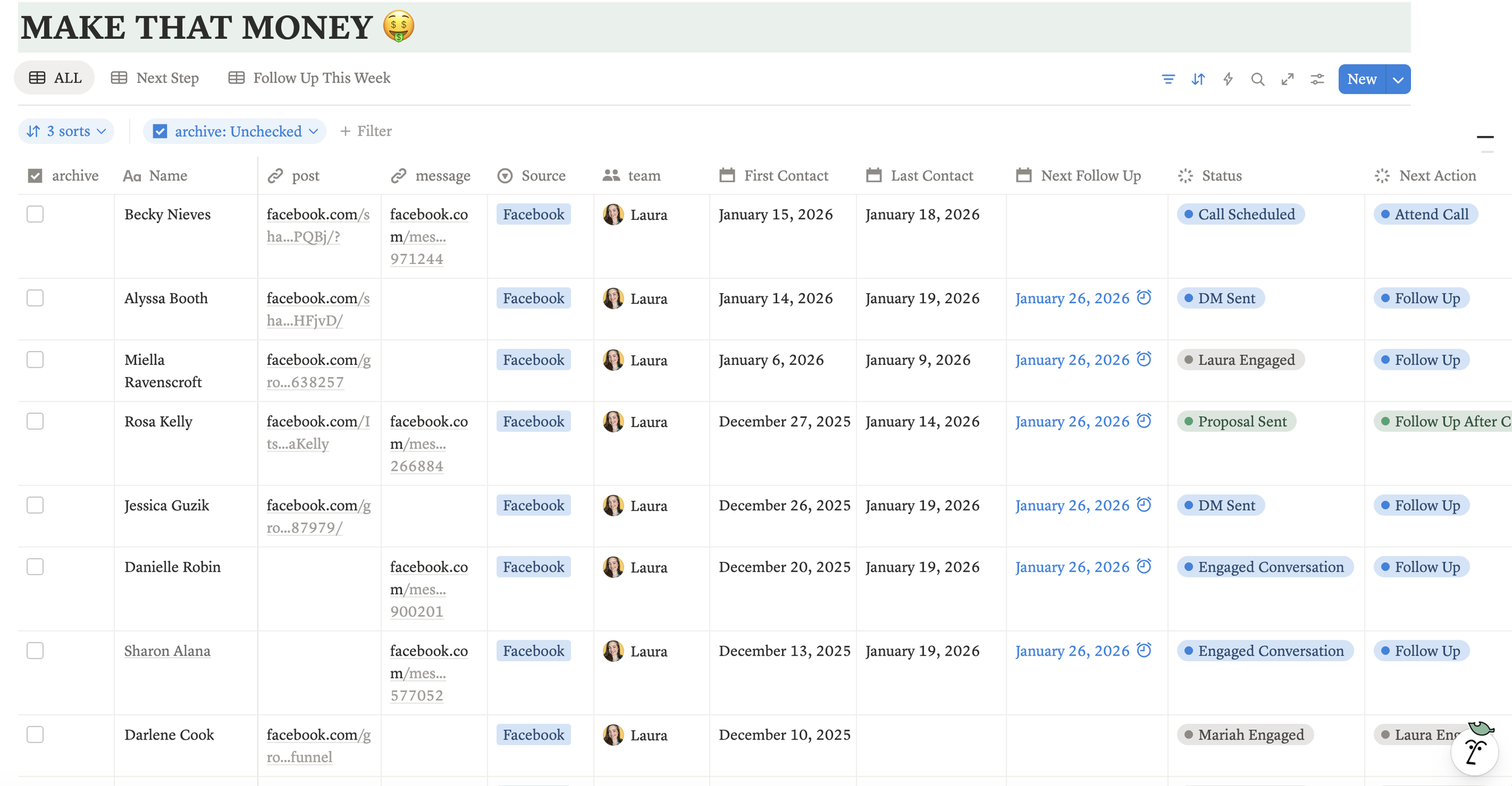 Capture every potential client. Track where they came from, where they are in your process, and when to follow up. Stop losing money in your DMs.
